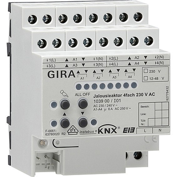 Реле/Устройство управления жалюзи InstabusKNX/EIB, 4-канальное 230/24-48 B, с ручным управлением